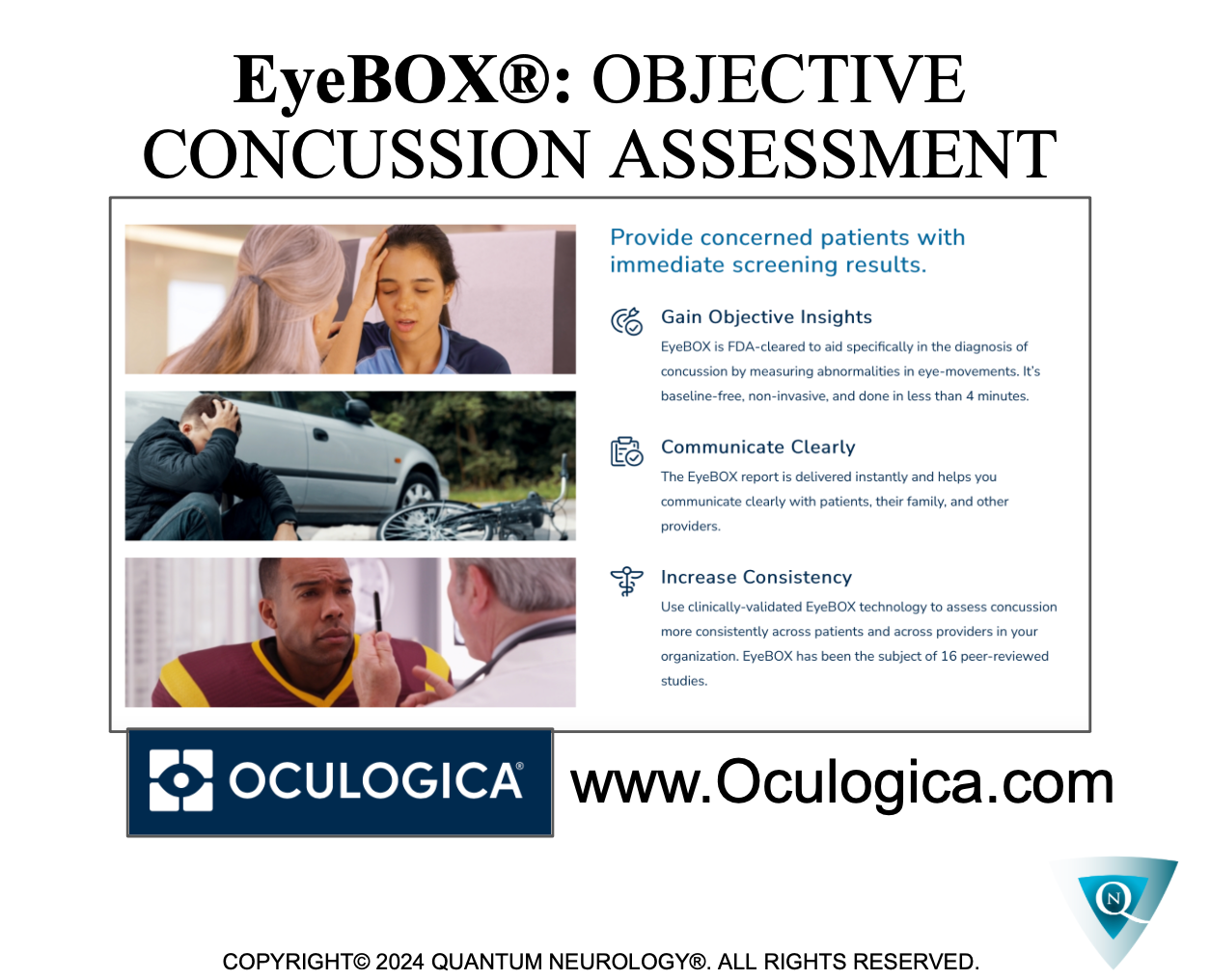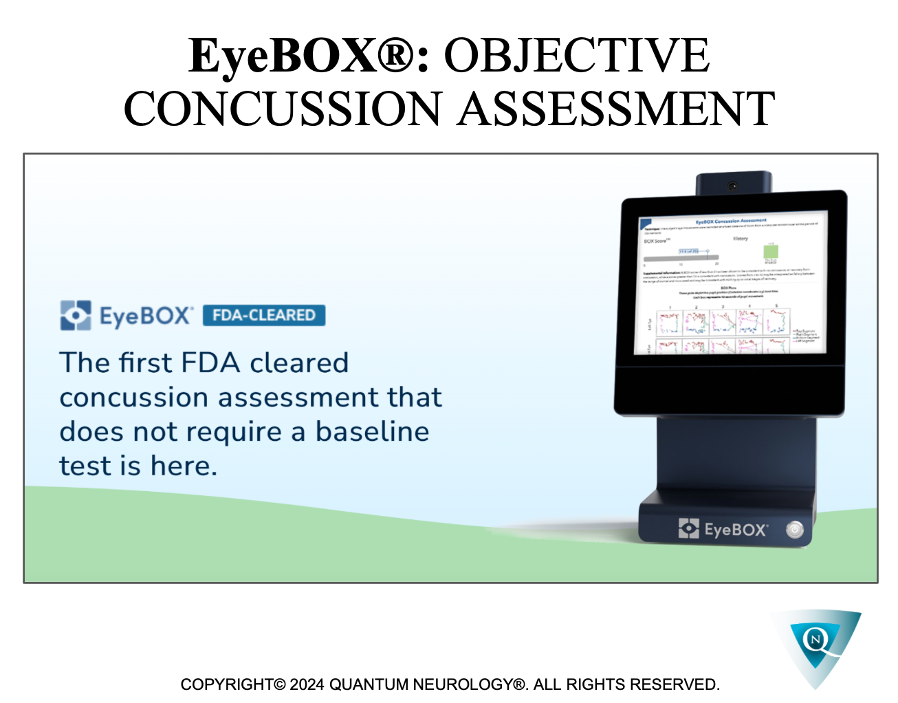 Quantum Neurology offers the 1st Concussion Reduction Protocol, validated by FDA-Approved EyeBOX Concussion Assessment Device & NeuroINFINITI Brain/Heart Monitoring Device!